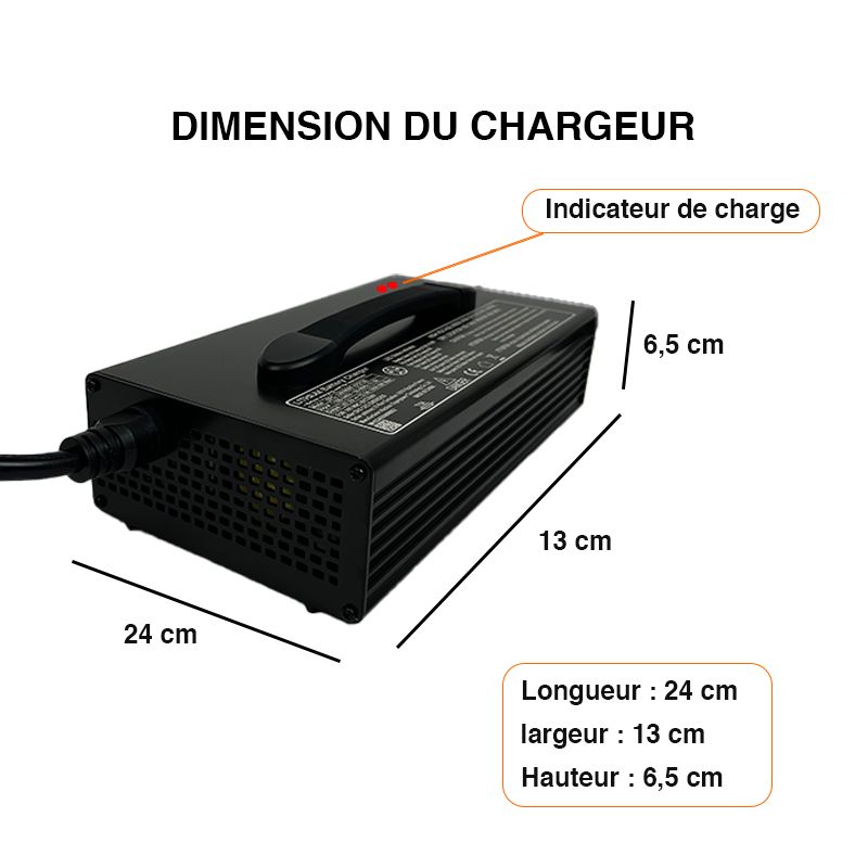 La tension de charge est de 29,4V DC pour une batterie Lithium-Ion LiMn en assemblage 7S.