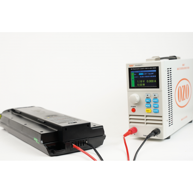 Le DIAGBAT OZO est un banc de décharge conçu pour évaluer la capacité résiduelle des batteries de diverses technologies, telles que le plomb, le lithium, le NiCd et le NiMh. Il permet également de vérifier le seuil de coupure du BMS et de générer une courbe de décharge. Un test complet ne nécessite que 2 minutes de main d'oeuvre.