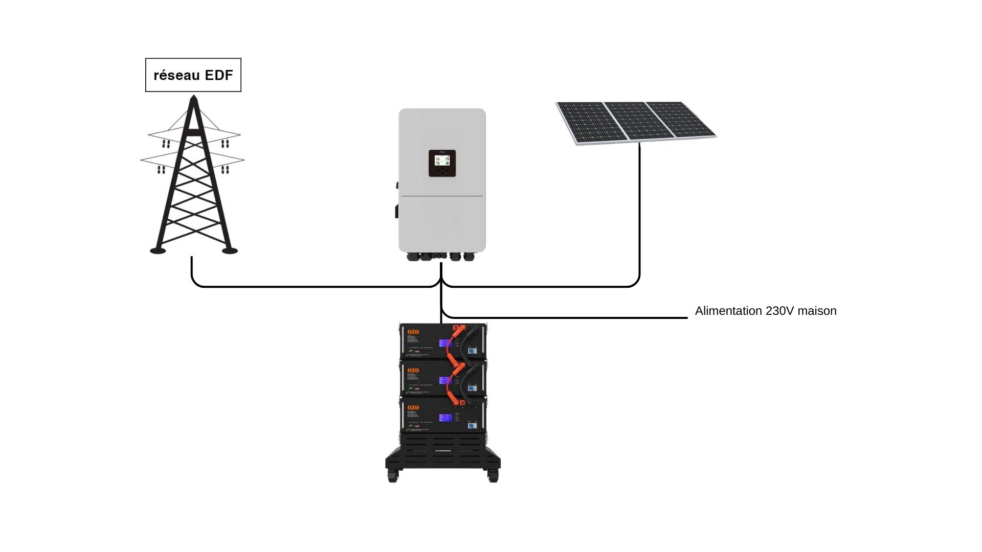 Compatible avec la plupart des onduleurs hybrides (Victron, SMA, Deye, Growatt, Goodwe, Solis), elle bénéficie du support et de la garantie OZO France de 10 ans, offrant ainsi une solution fiable, durable et écologique pour rendre votre maison ou votre entreprise plus autonome.
