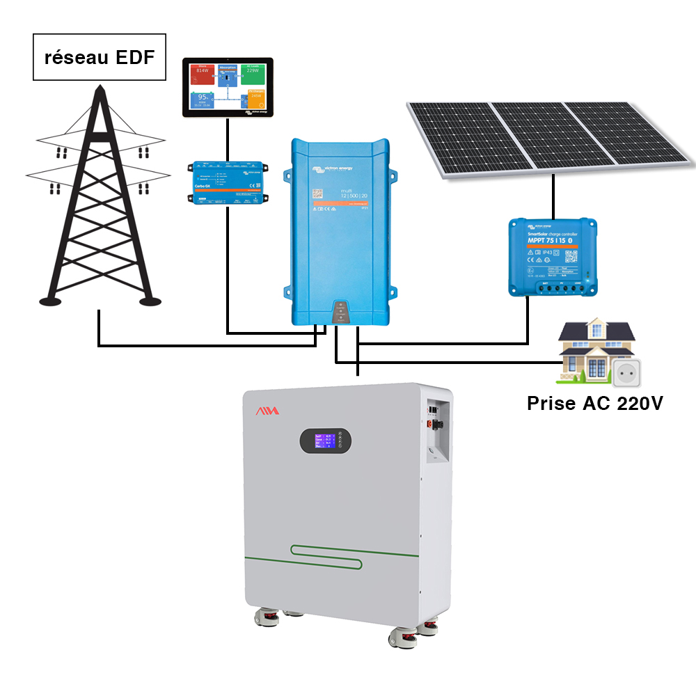 | Site isolé / gîte autonome | 6 | 10 | 2 | 10 kWh | 24 – 48 h |