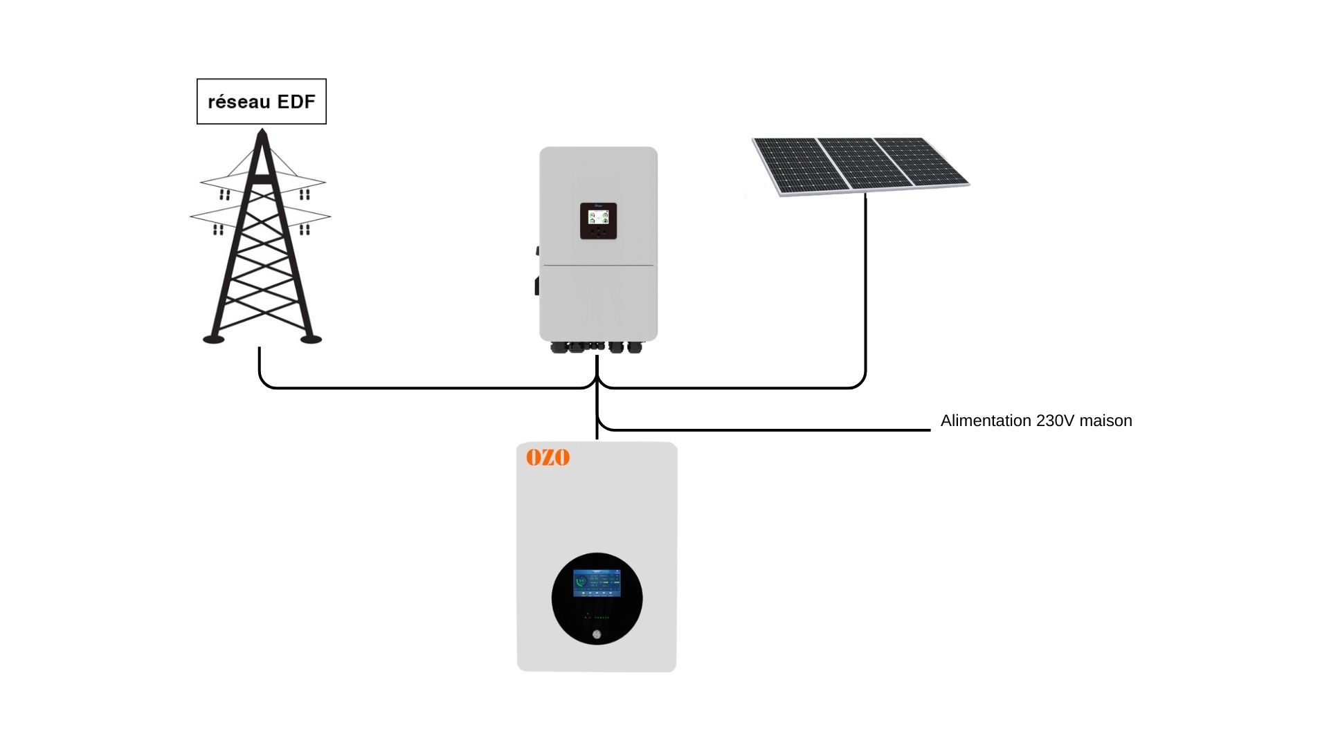 Si vous souhaitez étendre votre autonomie, connectez jusqu'à 16 batteries en parallèle . Ce branchement facile grâce au connecteur rapide fourni avec la batterie permet d’obtenir au maximum une capacité totale de 160 kWh . Investissez judicieusement dans l'énergie renouvelable avec la Batterie Solaire OZO pour une maison plus écologique et indépendante.