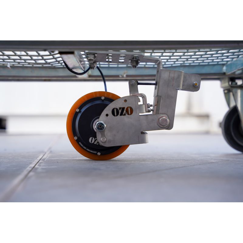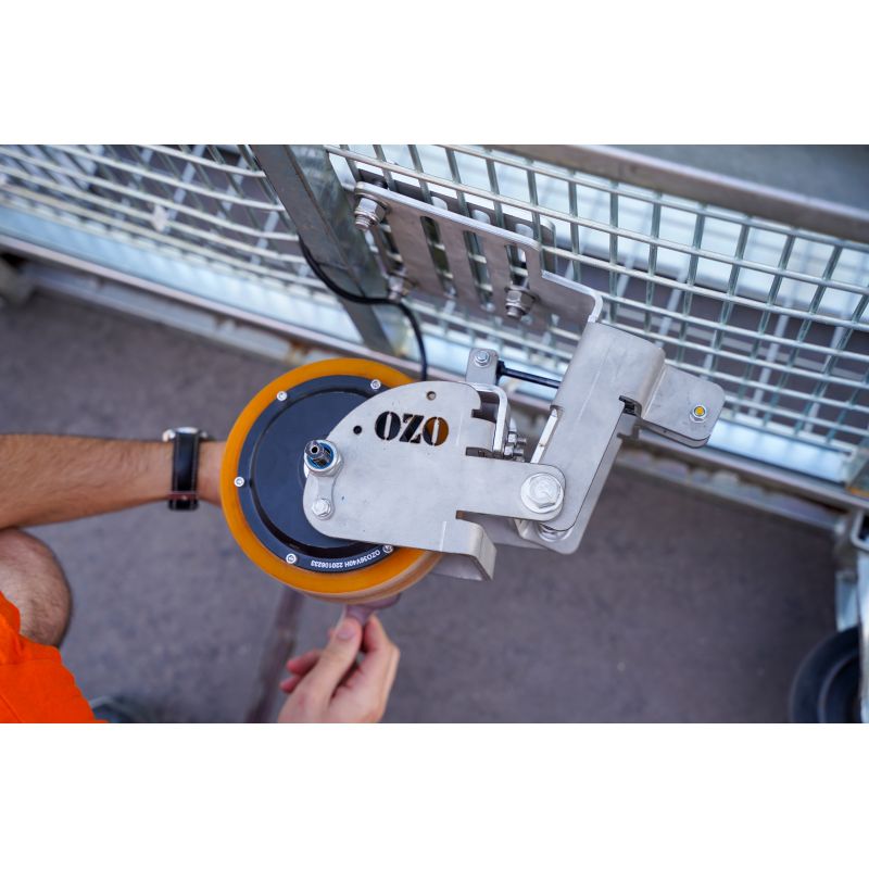 Chape suspendue sur verin gaz pour roue motrice électrique industrielle OZO.