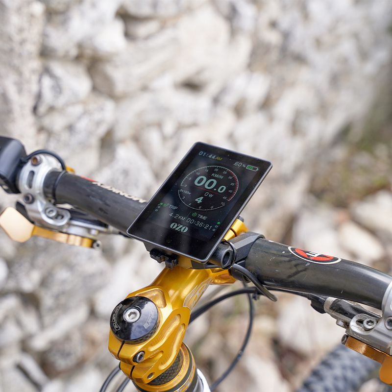 OZO vous propose de choisir parmi deux modèles de displays en fonction du budget et des fonctionnalités souhaitées. Le display est l'écran qui se trouve au guidon de votre vélo. Il vous affiche les paramètres électriques comme l'autonomie batterie, le niveau de puissance sélectionné et les paramètres trajets comme la distance ou la vitesse.