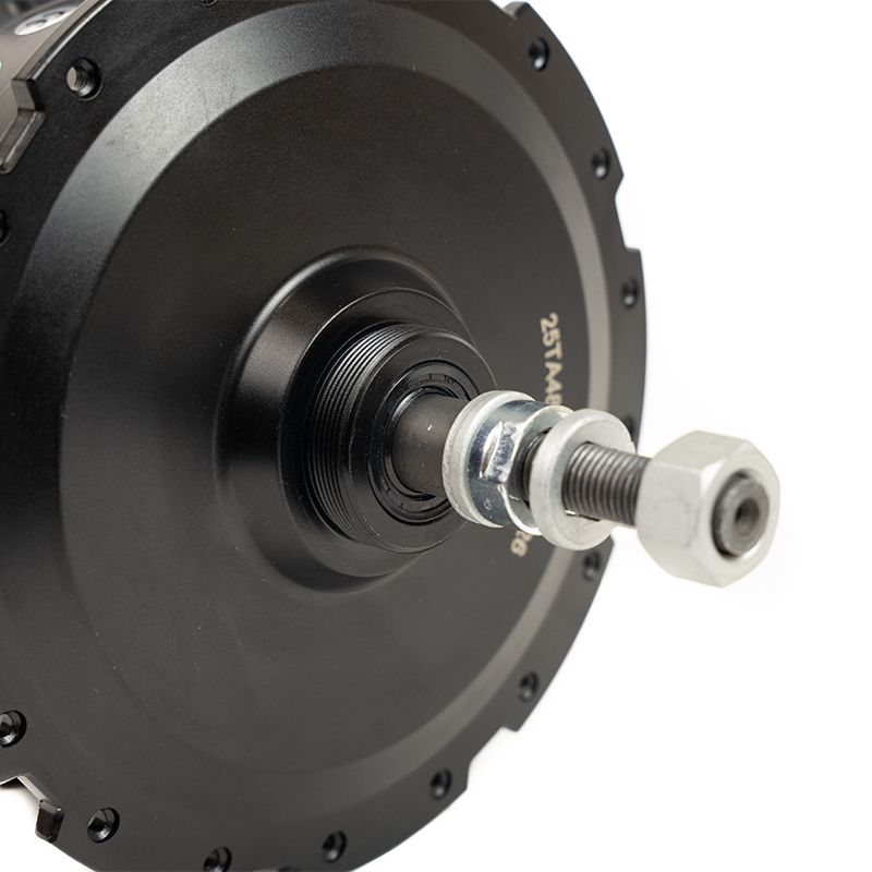 Ce moteur peut être commandé seul ou rayonné sur des jantes larges 65mm, 80mm ou 100mm en double paroi 20’’, 24’’ ou 26’’.