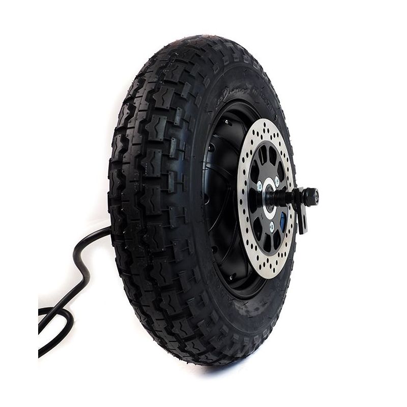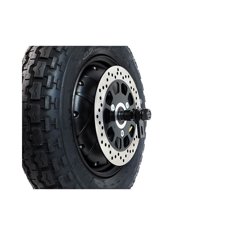 Electrifiez n'importe quelle base roulante avec ce puissant moteur 3000W délivrant 125N.m de couple en pointe. Idéal pour convertir vos outils agricoles en électrique afin de ne pas polluer vos cultures. Ideal aussi pour les milieux industriels comme les lignes de production ou les centres de logistique. Moteur roue Brushless 3000W livré de serie avec un pneu au standard 10 - 4.00 (diamètre exterieur pneu de 455mm) permettant de tracter une charge jusqu'à 300kg. Ce moteur électrique Brushless (sans balais ) avec une technologie direct Drive (entrainement direct) fait partie des moteurs les plus robustes du marché, aucun entretien à prévoir, endurance élevée et rendement maximal. La charge maximum admissible par le moteur en dynamique est de 500Kg. La charge maximum du pneu fourni avec le moteur est de 300Kg La constante de vitesse de ce moteur est de 5,8 Tr/min/Volt ce qui permet de rouler jusqu'à 25Km/h sous 48V et 20km/h sous 36V. Idéal pour les engins spéciaux, chariots agricoles, transporteur de bûches, élevage d'animaux, utilisation dans les vignes, champs avec dénivelé. Agriculture biologique sans utilisation de carburant fossile, transport de sac d'engrais, de caisses de champagne, caisses de vin, foin. Avec sa classe d'étanchéité IP 65, cette roue motorisée pourra faire face toutes les intempéries et les ambiances tropicales de vos serres maraichères. Cette assistance permettra de préserver votre santé et celle de vos employés en réduisant considérablement l'effort au travail. Cela permettra d'augmenter votre rythme de travail sans forcer et vous permettre de gagner en productivité. Ce moteur Brushless pour brouette agricole doit être alimenté avec une batterie 36V ou 48V DC. Nous proposons bien sûr un kit complet (contrôleur, batterie, système de commande) adapté à ce moteur qui vous permettra d'ajouter une motorisation électrique sur votre véhicule en moins de dix minutes. |