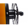 La version 169mm d'entraxe dispose d'un support avce 6 trous filetés M5 d'un côté et d'un filetage central de l'autre côté permettant l'entrainement d'outillage par exemple ou l'installation d'un disque de frein mécanique.